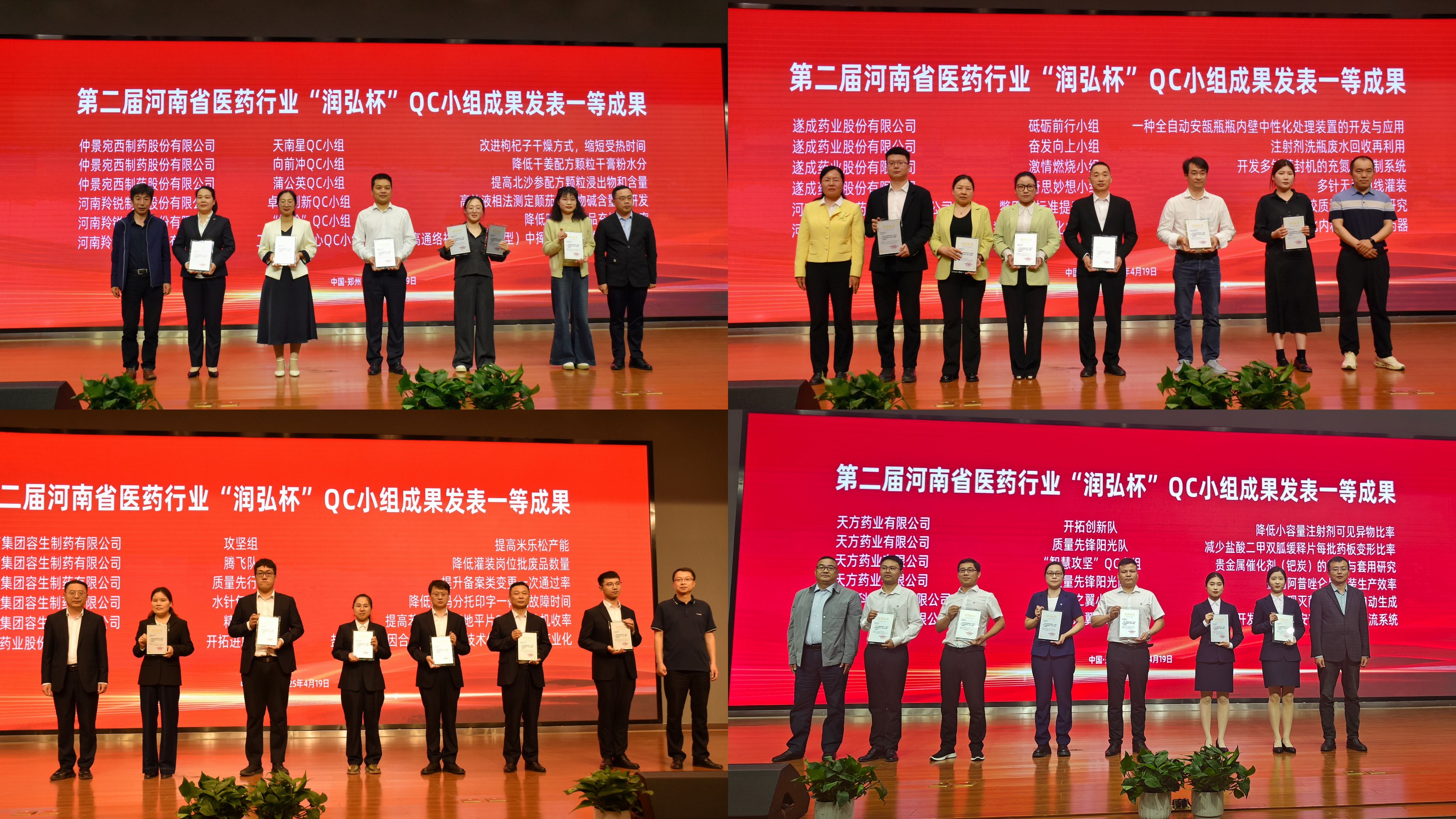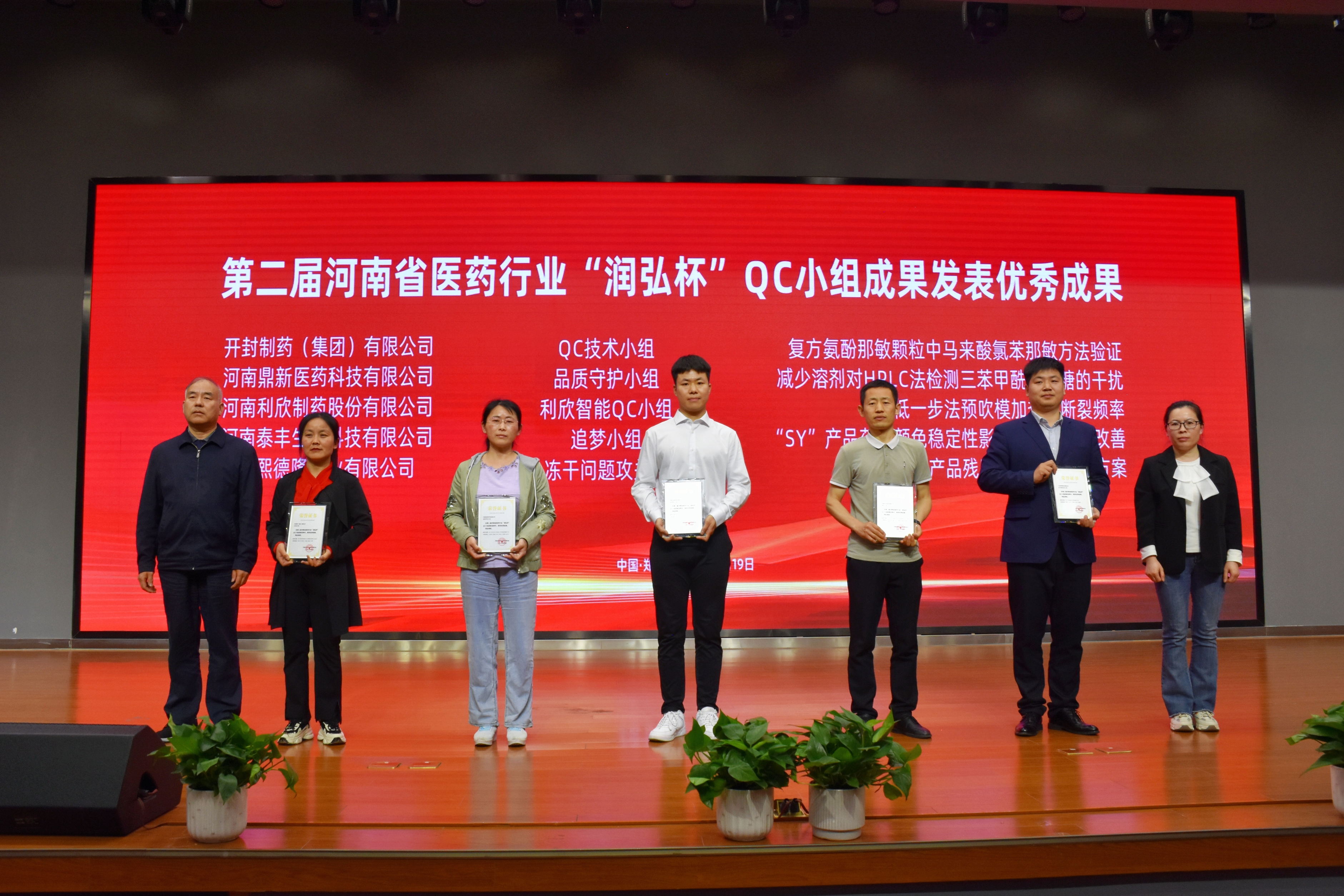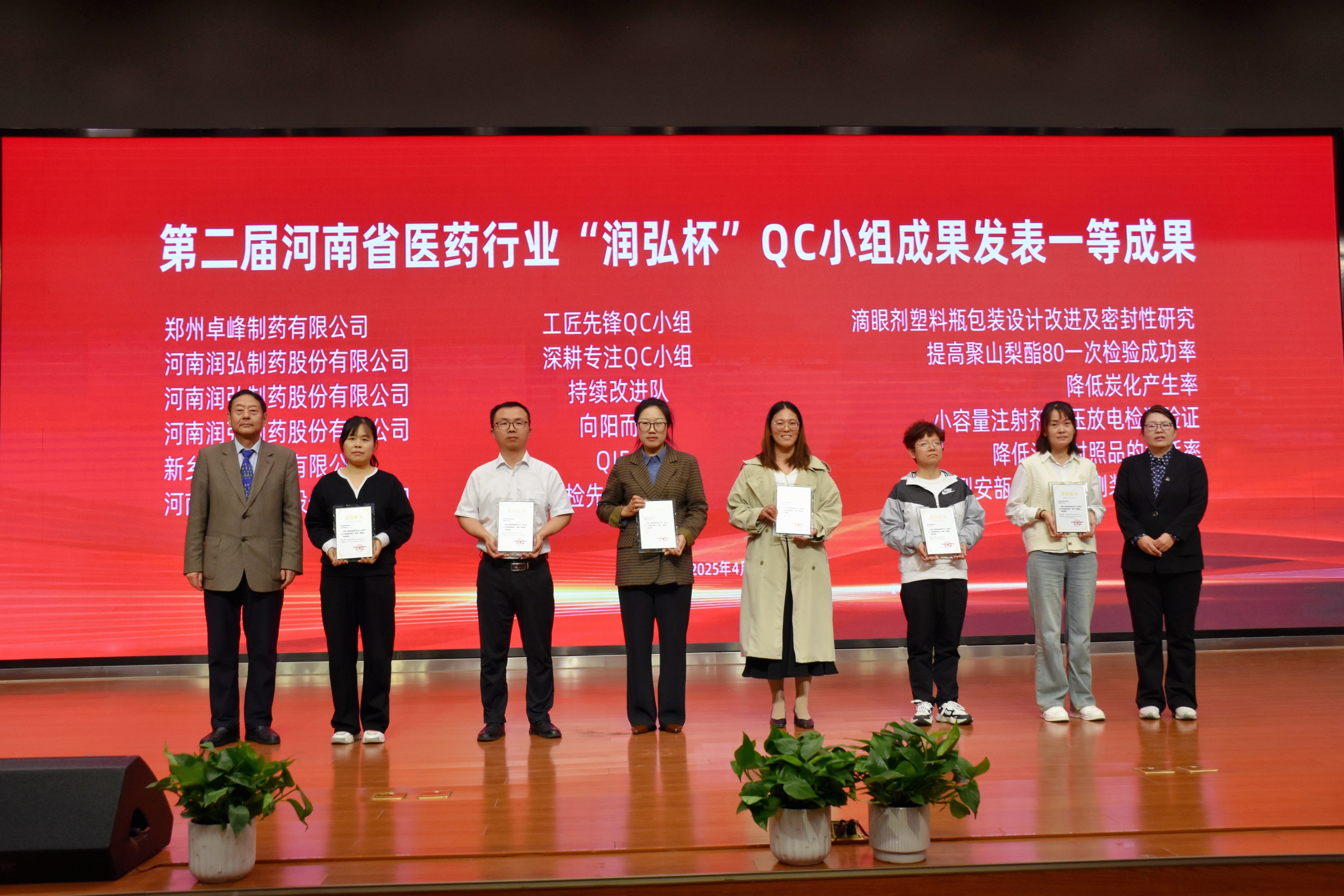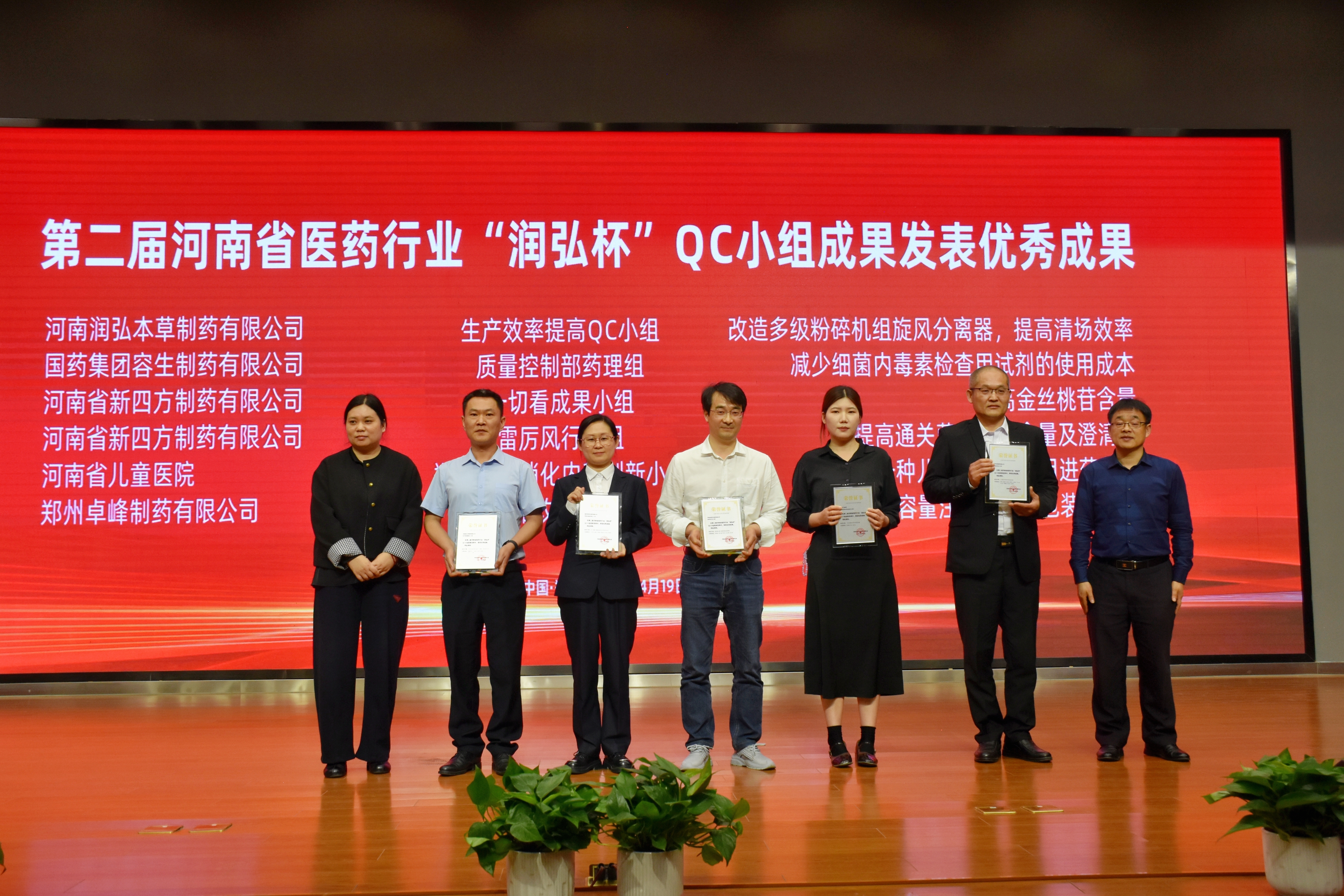 4月19日,全省医药行业40个优秀QC成果进行现场发布,12位专家评审并给予专业点评。润弘制药表现亮眼: